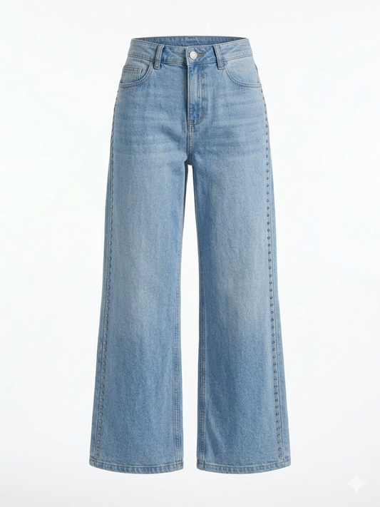 Jeans Denim Wide-Leg con Borchie