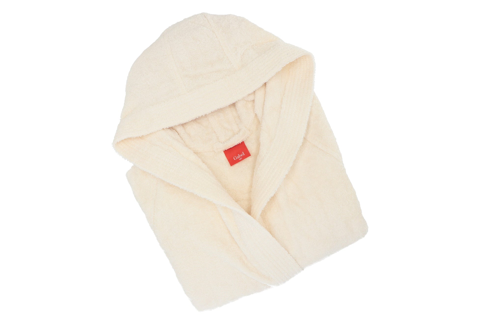 Il design con cappuccio aggiunge un tocco di praticità, mantenendo la testa asciutta e calda. La cintura cucita sul centro schiena garantisce una vestibilità sicura e confortevole. Grazie alla qualità superiore dei materiali utilizzati, l'accappatoio Gabel è resistente nel tempo e mantiene inalterata la sua morbidezza anche dopo numerosi lavaggi.