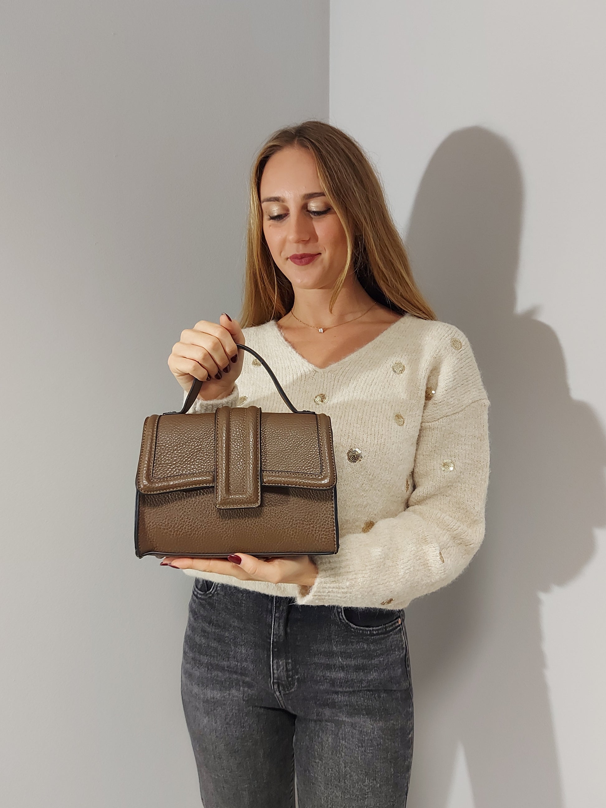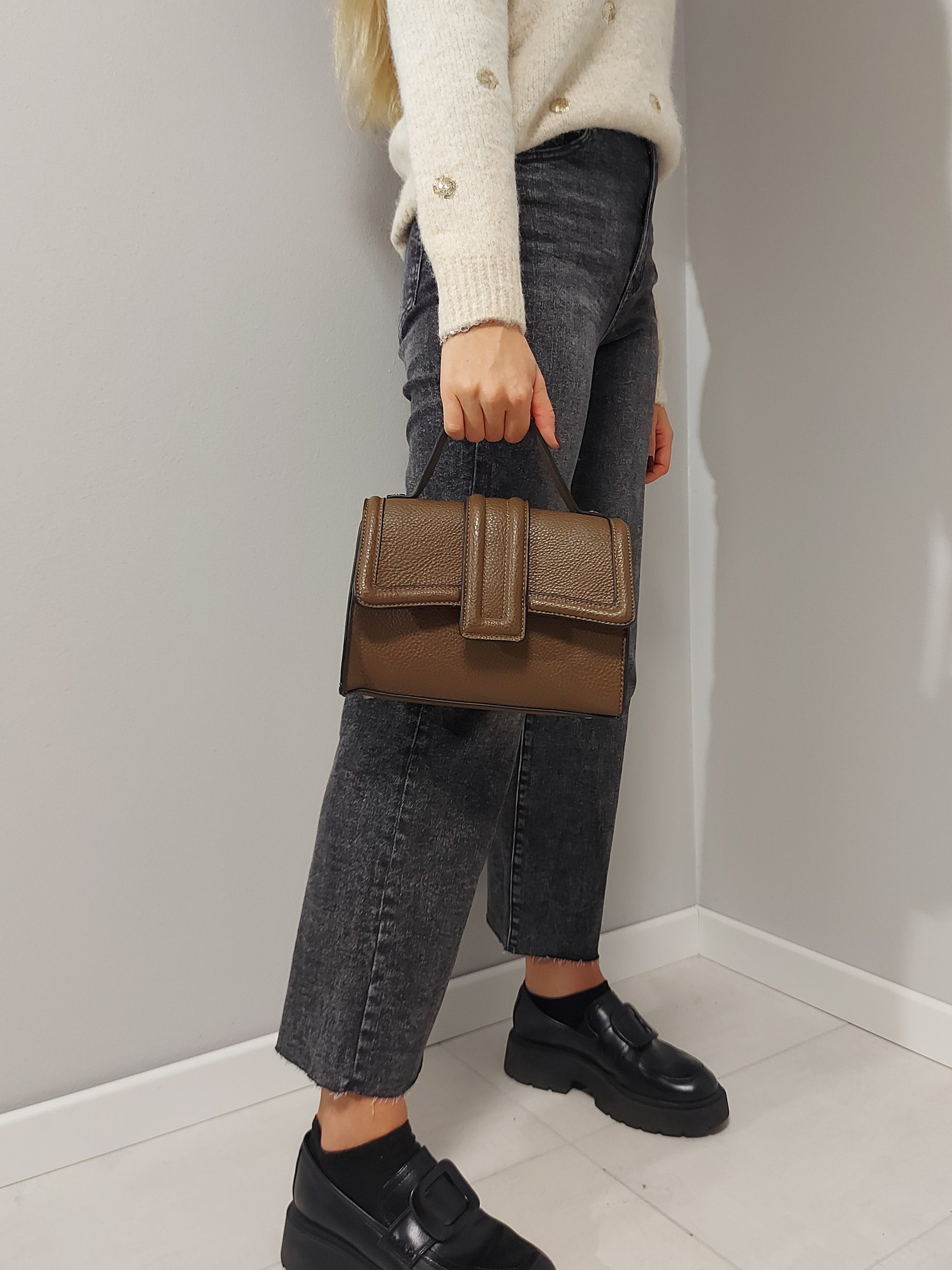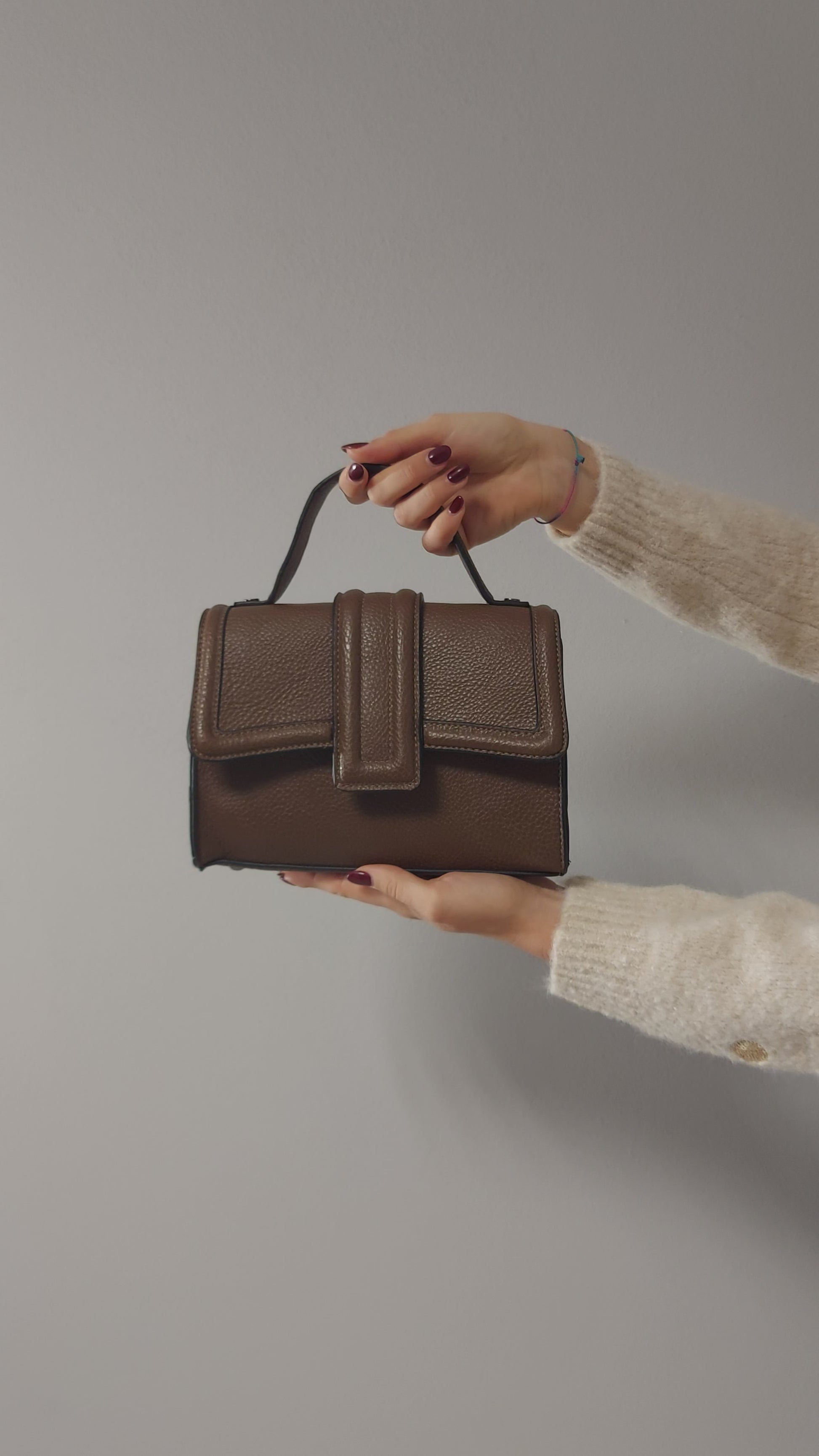 Borsa a Mano Marrone con Tracolla Rimovibile