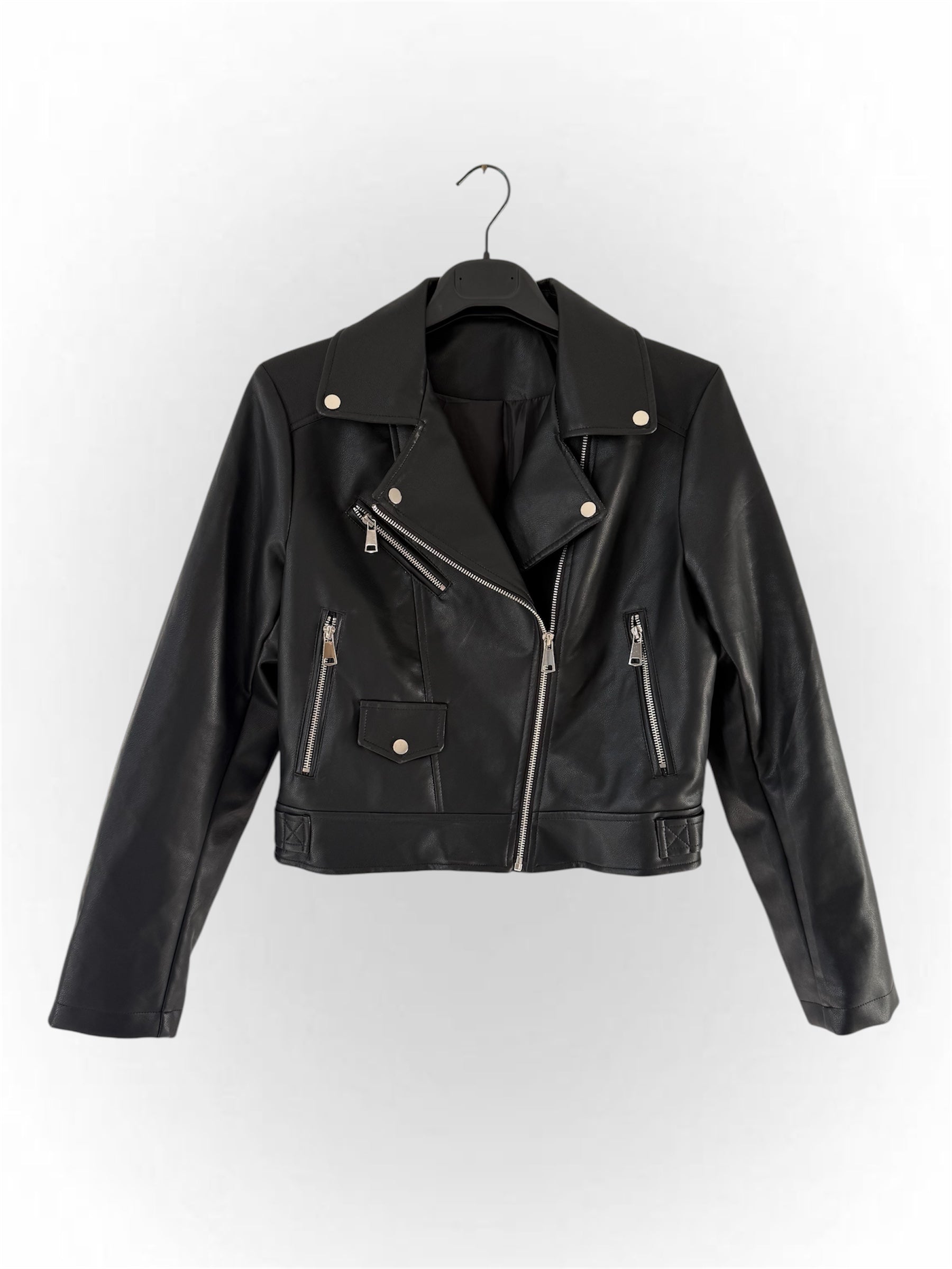 Dai carattere ai tuoi outfit con questo chiodo da donna in stile rock, un'icona di tendenza intramontabile. Realizzato in nero, presenta cerniere metalliche e tasche strategiche che aggiungono un tocco grintoso e contemporaneo. Il design over da carattere ai tuoi outfit, mentre i dettagli argento dal gusto audace lo rendono perfetto per chi ama un look deciso.