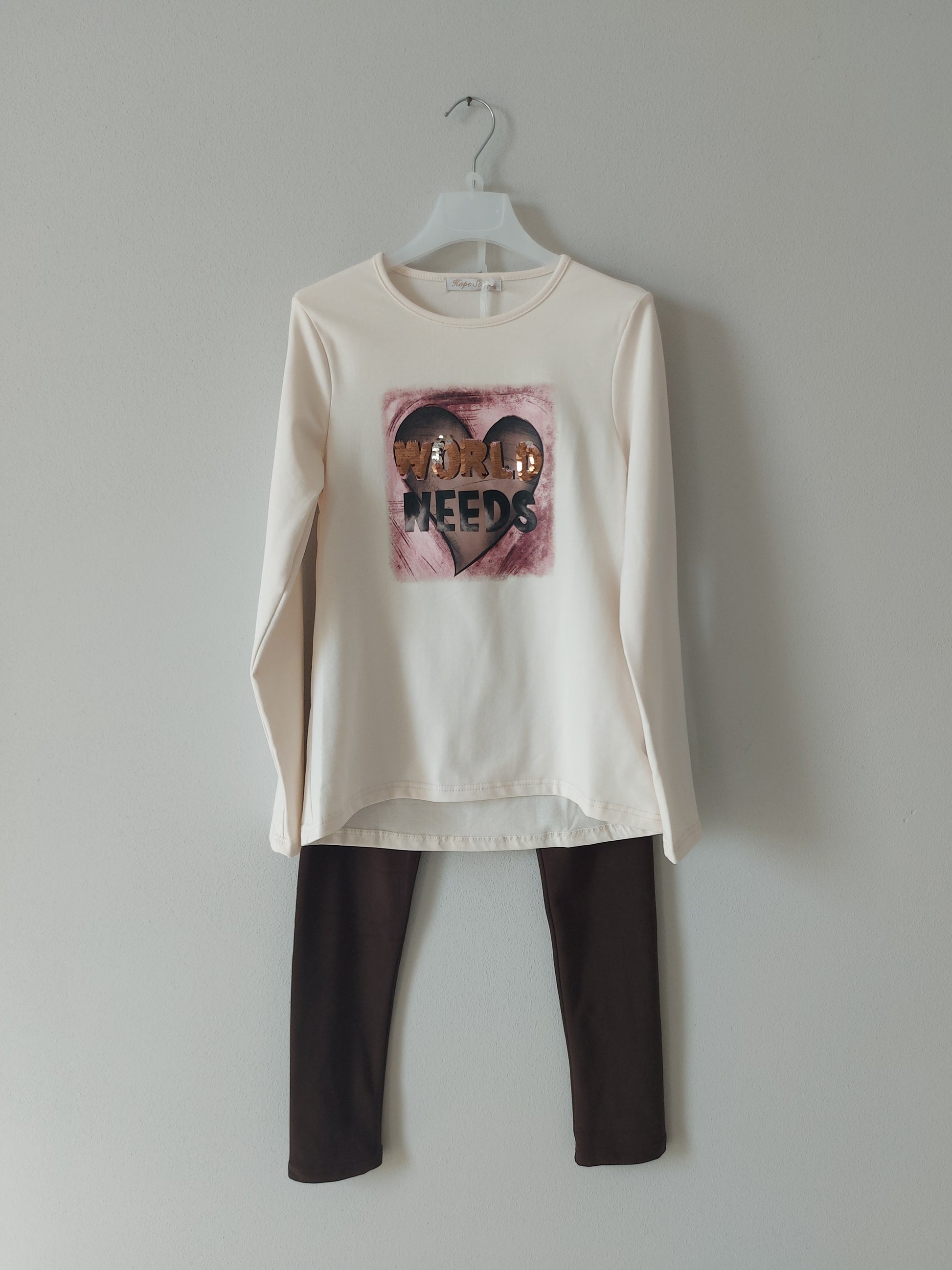 Pronti per un'esplosione di dolcezza? Questo completo leggings e maglietta a maniche lunghe per bambina è tutto ciò che serve per trasformare una giornata qualunque in un'avventura da favola! I leggings morbidi e felpati abbracciano le gambette come una nuvola, perfetti per correre, saltare e fare capriole. Il maglioncino è soffice come un abbraccio, decorato con stampa cuore che farà sorridere ogni principessina. Ideale per le piccole che amano giocare con stile, questo set è il mix perfetto tra comfort e allegria. Ogni giorno sarà un’occasione speciale!