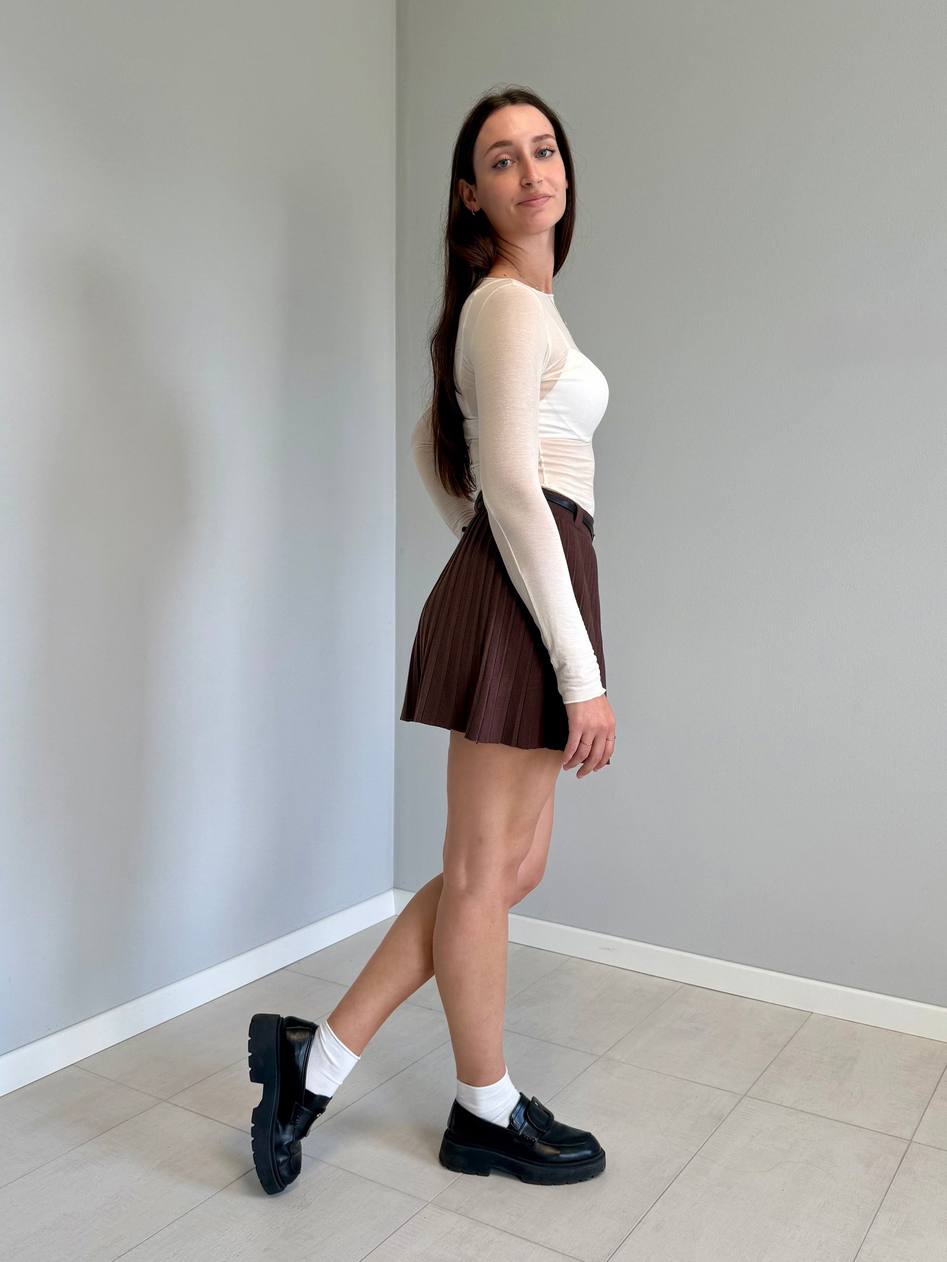Perfetta da abbinare con stivali, sneakers o una camicia oversize, questa gonna corta a pieghe è l’alleata perfetta per la scuola, il tempo libero o un’uscita con le amiche.