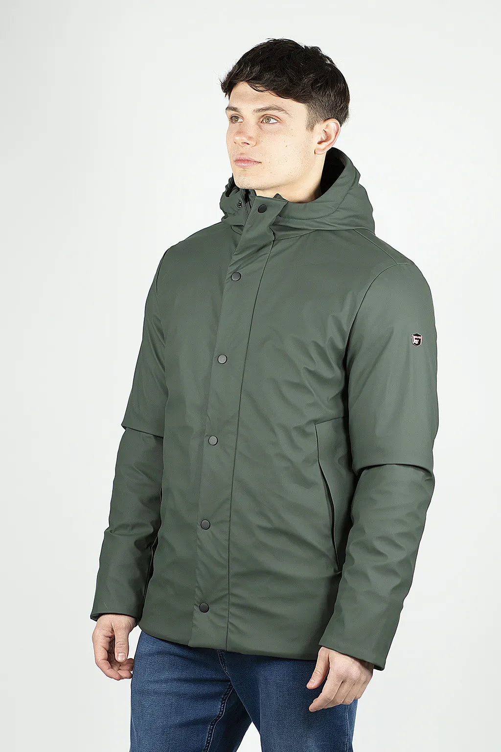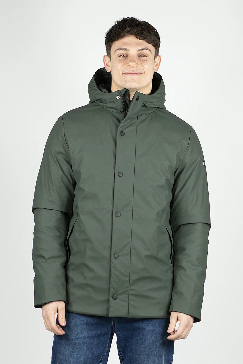 Giacca in tessuto gommato: perfetta per affrontare qualsiasi clima con stile! La finitura gommata assicura protezione e un look contemporaneo, mentre il cappuccio fisso e la zip nastrata con patta a bottoni garantiscono una barriera contro vento e pioggia. Le due tasche inferiori sono foderate con un tessuto caldo per mantenere le mani al caldo, e il doppio polsino interno antivento ti assicura una protezione totale. Completa di un pratico taschino multiuso all’interno e con l’etichetta del marchio sulla manica sinistra, è la giacca ideale per chi non si ferma mai!