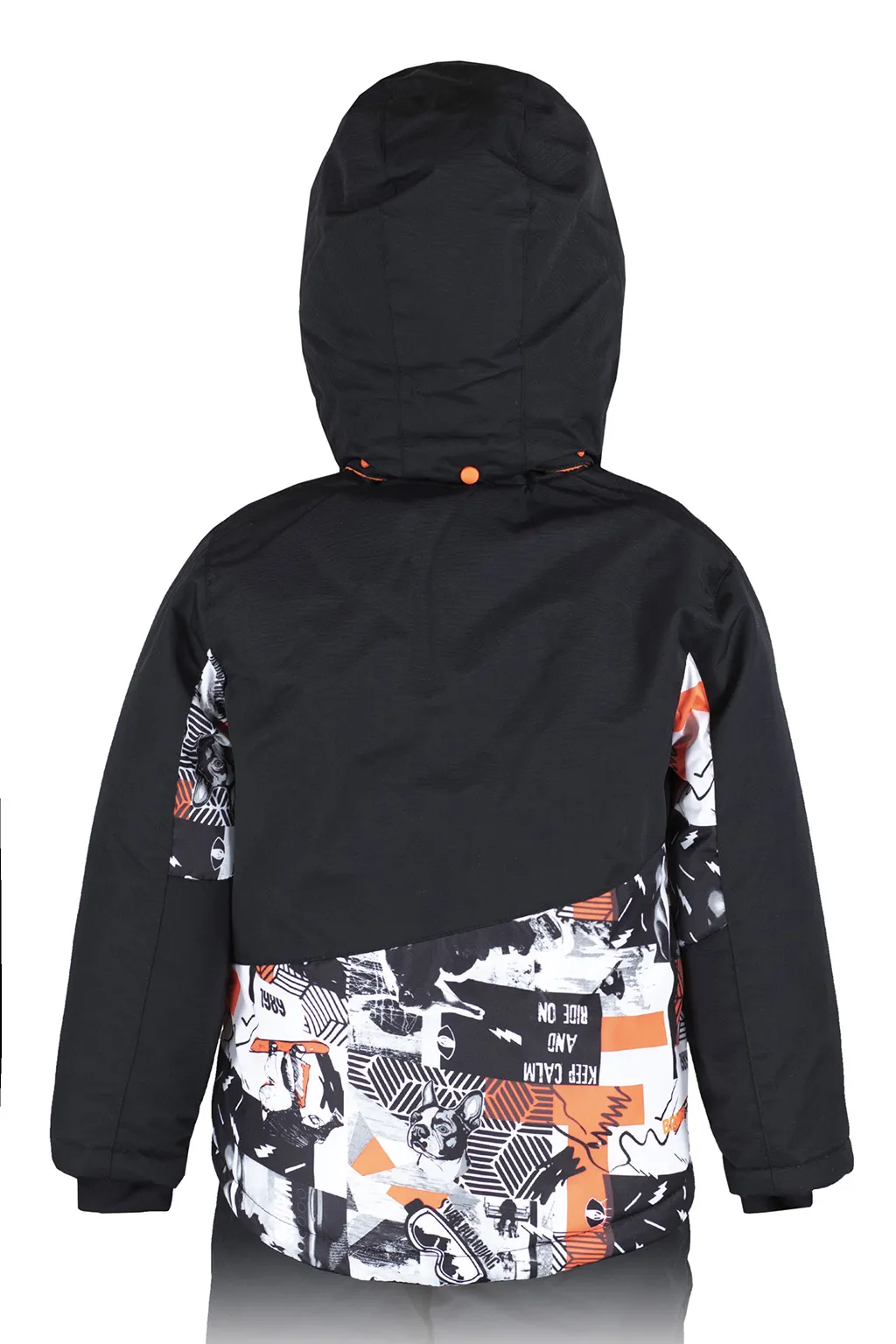 Con la giacca da neve per bambini, il divertimento sulla neve non ha limiti! Il design moderno con tagli obliqui e un grande inserto stampato rende questa giacca super cool e riconoscibile anche da lontano. Per aggiungere un tocco di colore e praticità , c’è anche un taschino sul petto a contrasto, perfetto per piccoli oggetti o snack da portare con sé.