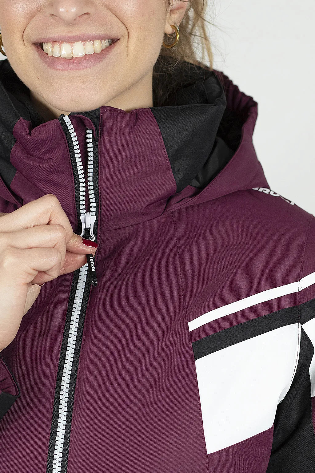 La chiusura frontale con cerniera a vista bicolore aggiunge un tocco di grinta al design, ripresa anche nelle tasche laterali con zip a contrasto, ideali per tenere al sicuro i tuoi oggetti. Non manca il pratico taschino porta skipass con zip nascosta sulla manica sinistra, per accedere agli impianti in un attimo.