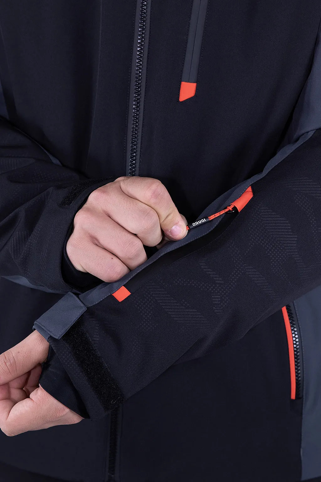 La chiusura frontale con cerniera e il cappuccio staccabile con coulisse permettono un’adattabilità totale al clima. L’interno della schiena, realizzato in tessuto elastico, facilita ogni movimento durante l’attività sportiva. Funzionale e ben organizzata, la giacca presenta una tasca sul carré sinistro, due tasche basse, un taschino porta skipass e una tasca interna con cerniera.