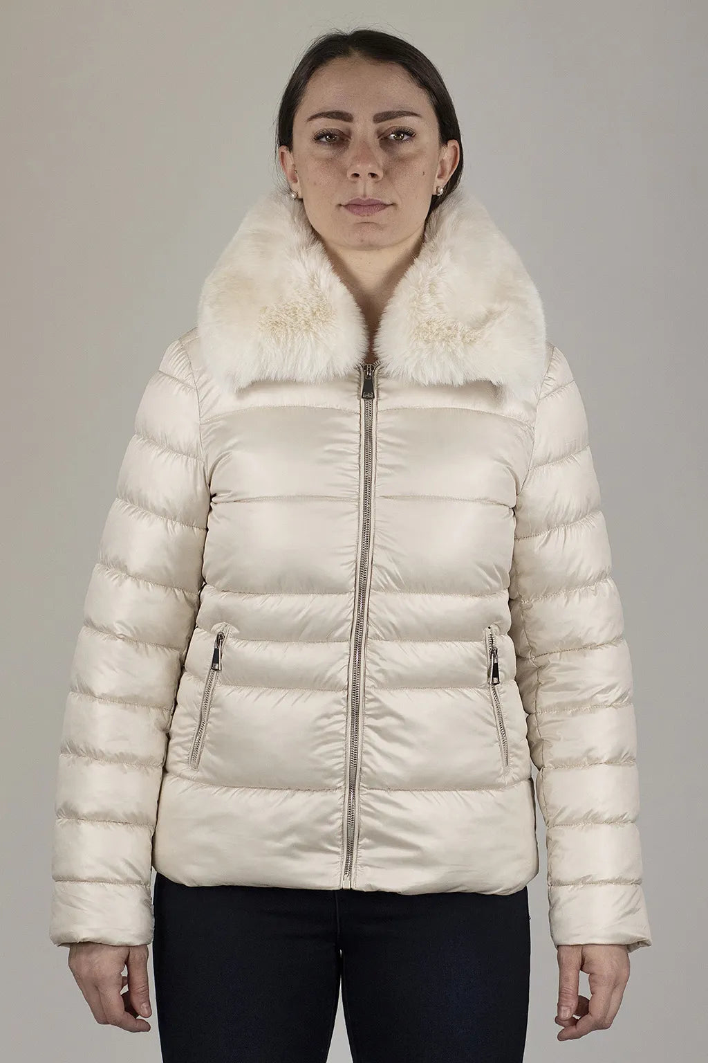 Se stai cercando la giacca perfetta per affrontare l'inverno con stile, eccola qui! Questa giacca in tessuto semi-lucido è un vero must-have. Il suo importante collo decorato (e staccabile, perché sì, puoi cambiarlo a seconda del mood!) ti farà sentire elegante e pronta per qualsiasi occasione, dalla passeggiata in centro alla serata glamour. E non dimentichiamoci della morbida imbottitura effetto piuma: è così leggera e calda che ti sembrerà di essere avvolta da una nuvola di calore!