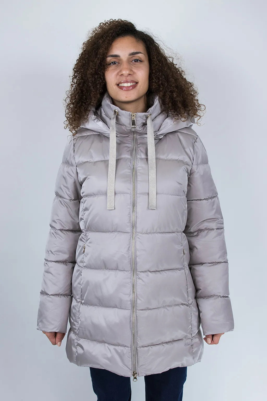 Avvolgente, elegante e dal fascino moderno: questo cappotto con cappuccio effetto satinato è il capo perfetto per affrontare la stagione fredda con stile. Realizzato in tessuto luminoso e raffinato, presenta trapuntature orizzontali che valorizzano la silhouette e donano un look contemporaneo.