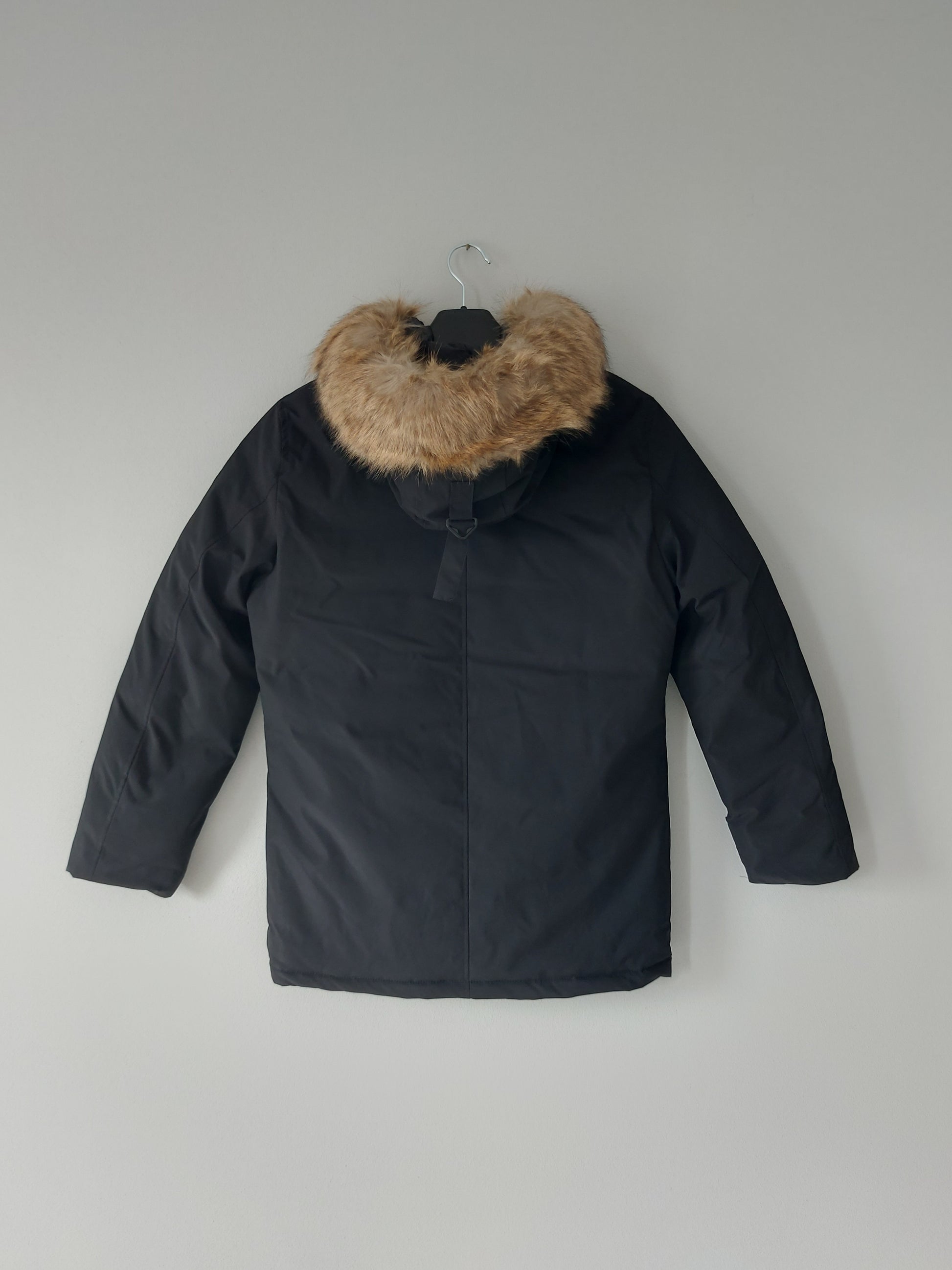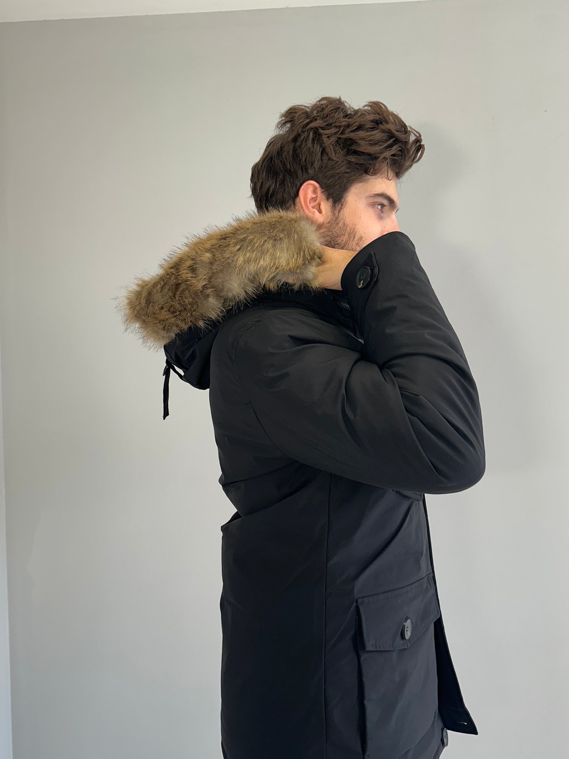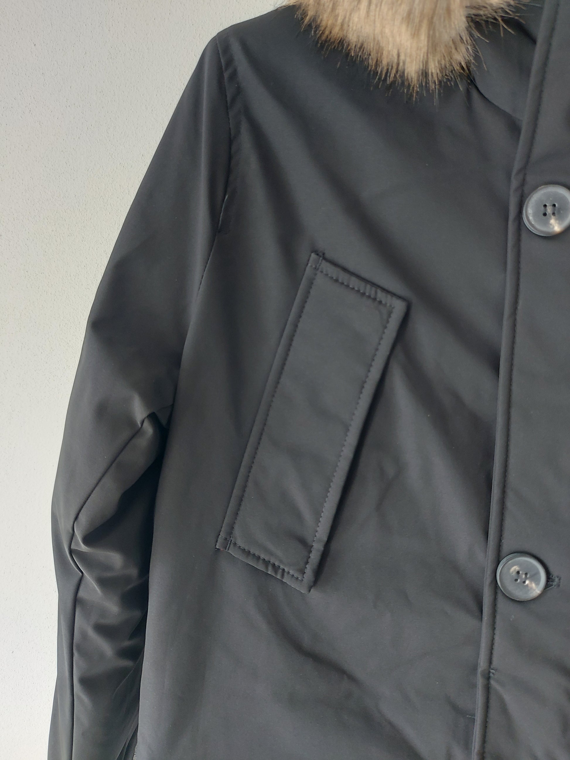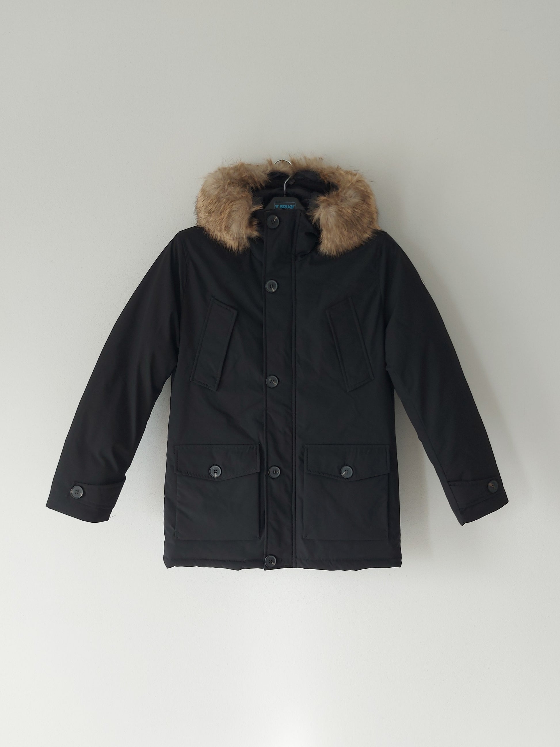 Giubbotto Nero Brugi con Cappuccio di Pelo e Tasche CY46