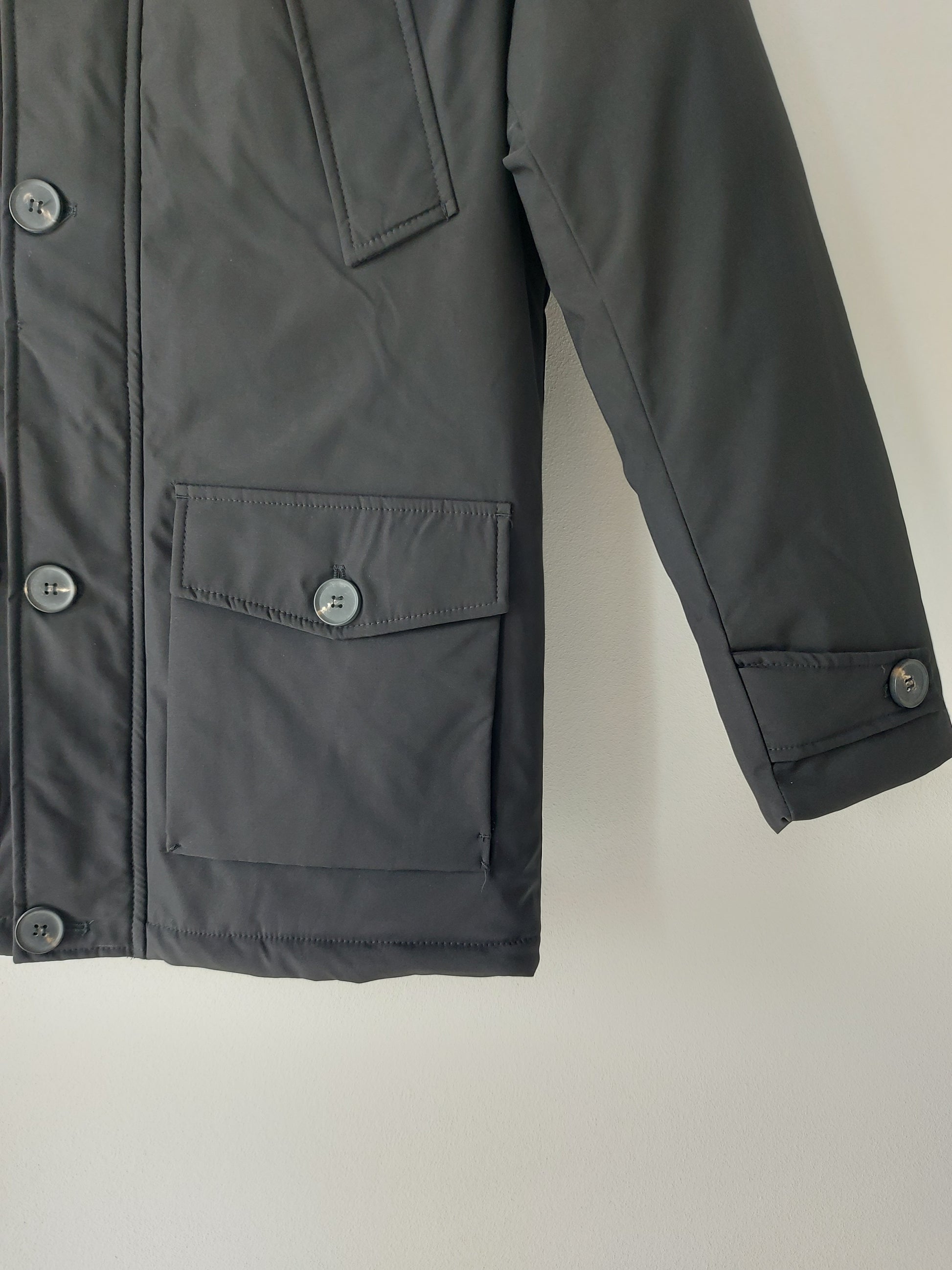 Resistente e impermeabile, questo giubbotto tre quarti in nylon trapuntato è un must have da avere nel tuo guardaroba. La chiusura con zip lunga e la patta sul davanti con chiusura di bottoni proteggono da neve e pioggia, mentre le tasche laterali con bottone ti consentono di tenere tutto il necessario a portata di mano. Indossalo nel weekend non te ne pentirai!