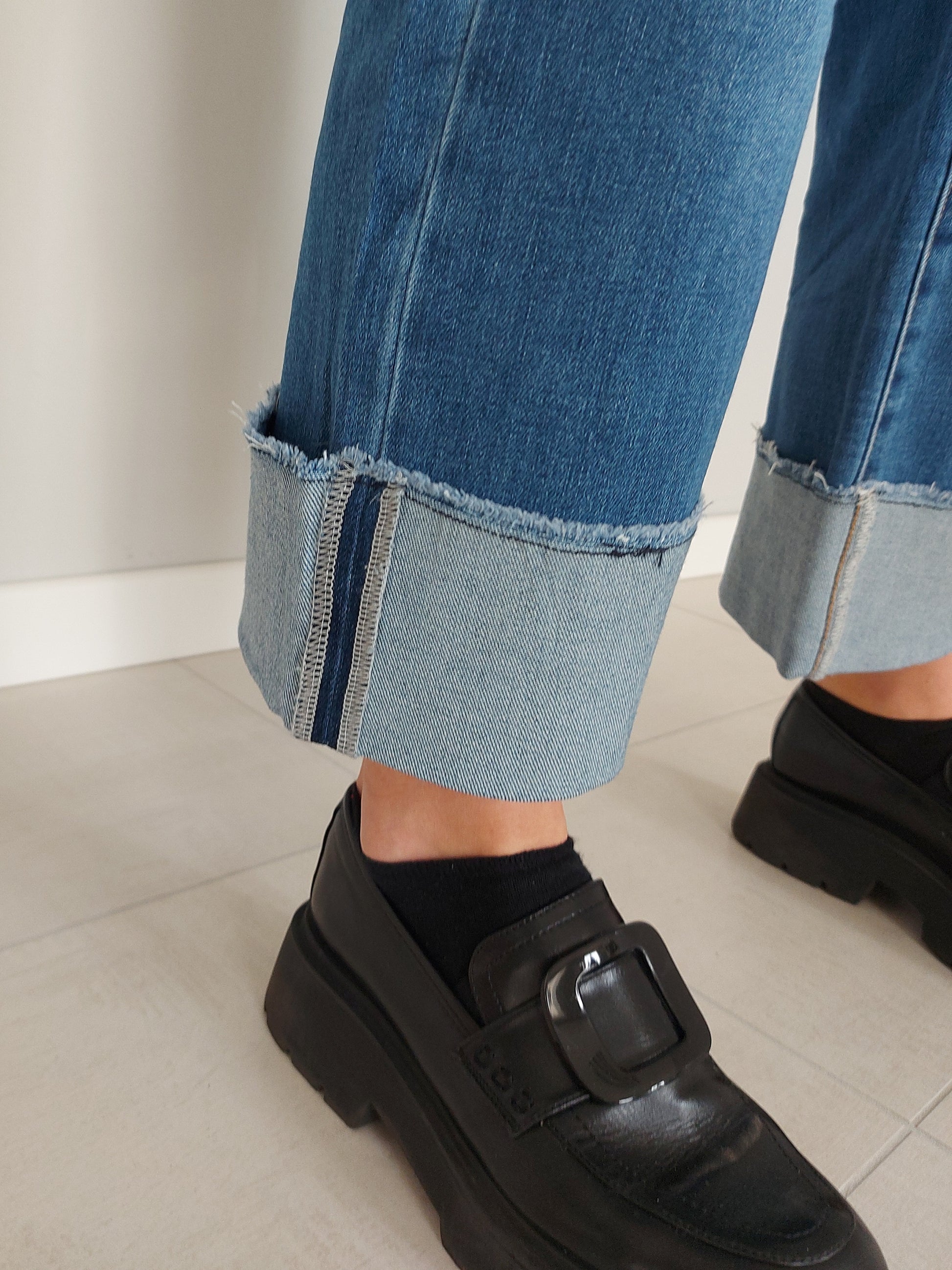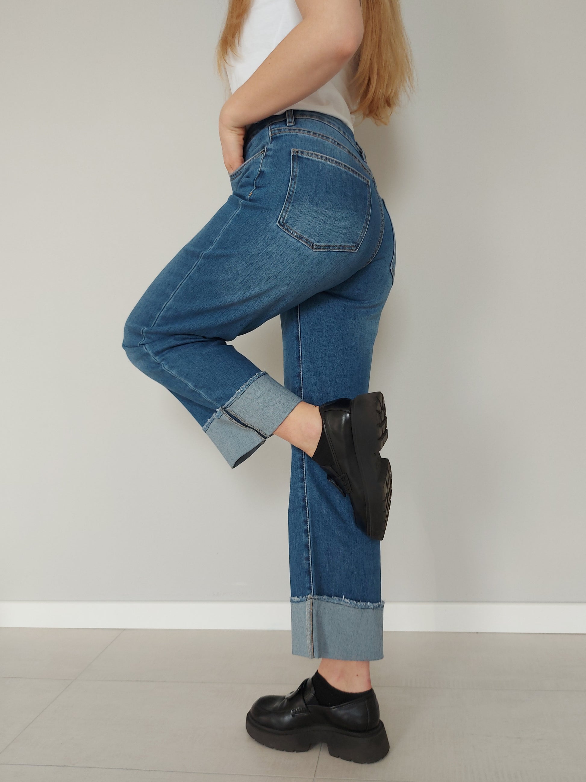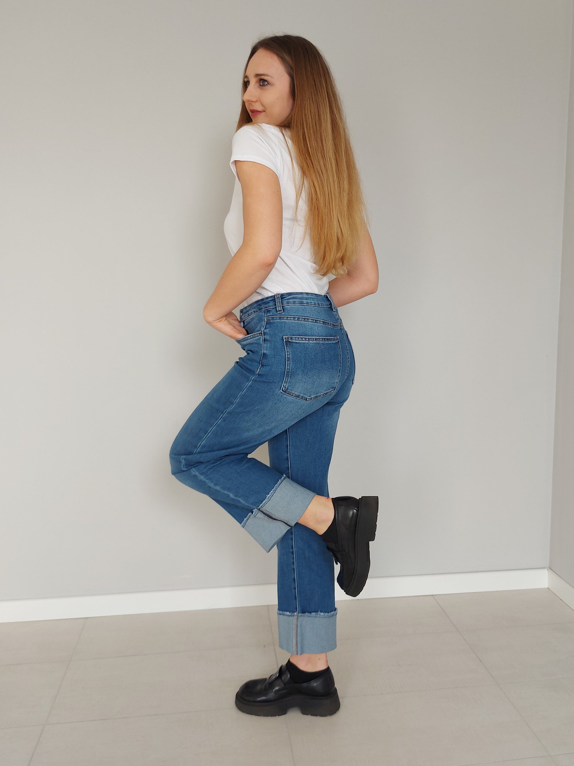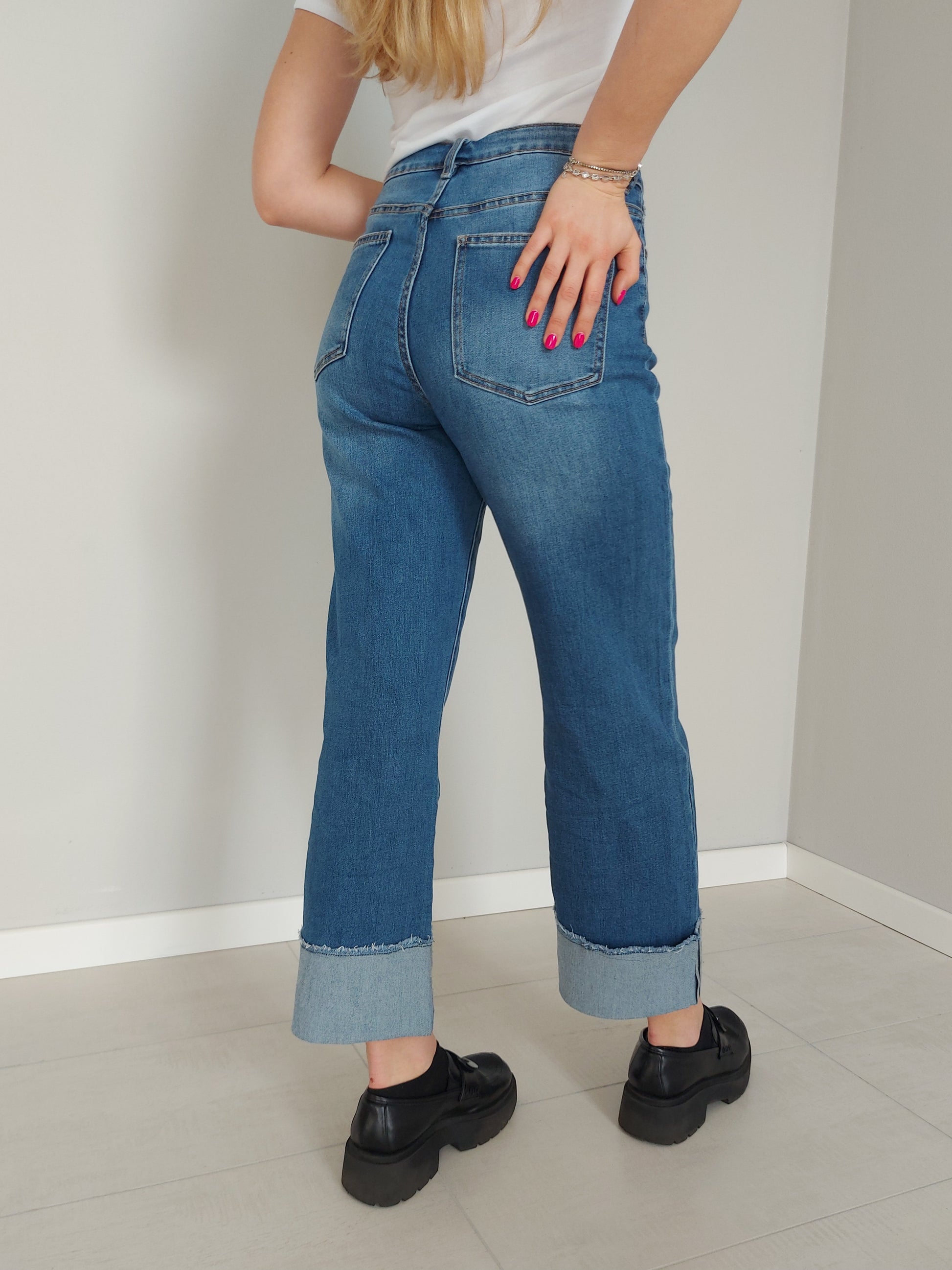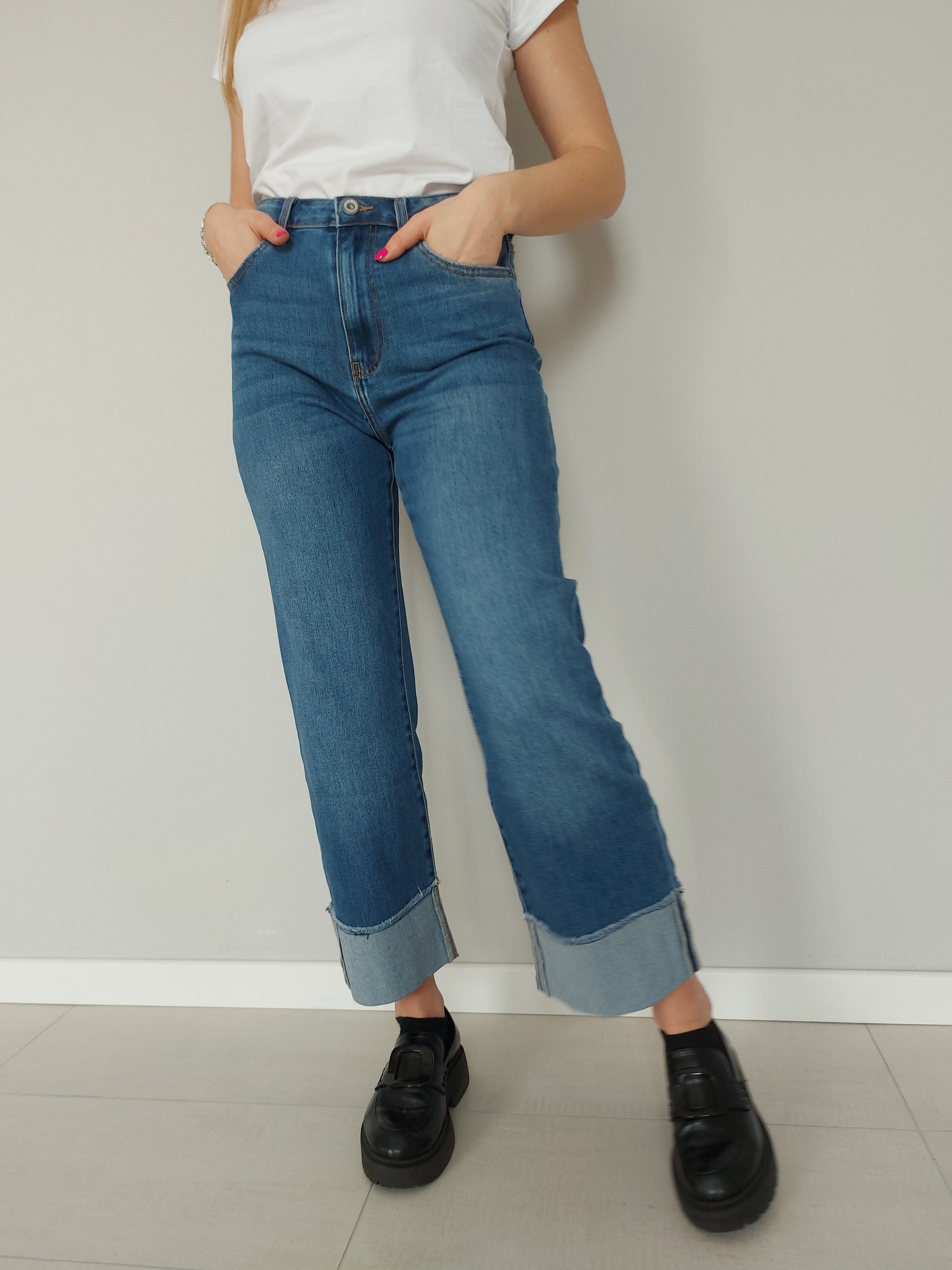 Aggiungi un tocco di eleganza e comodità al tuo guardaroba con i nostri Jeans Palazzo con maxi risvolto. Realizzati in denim scuro, sono perfetti per ogni occasione primaverile. Sentiti sempre alla moda e a tuo agio!