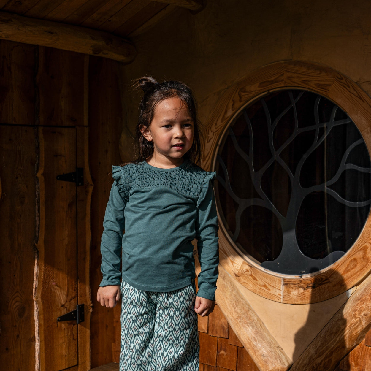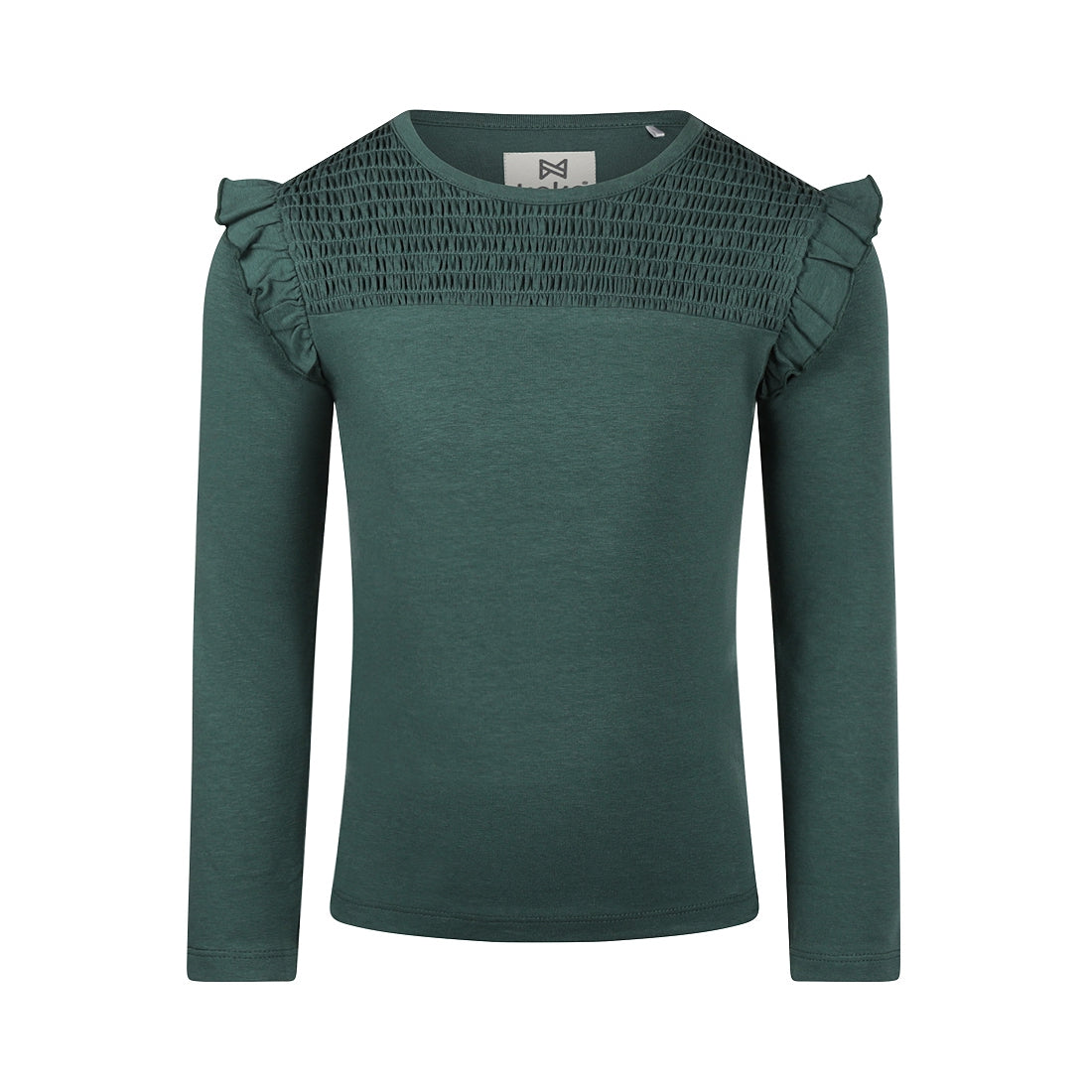 Aggiungi un tocco di stile al guardaroba della tua piccola con questa splendida maglietta a maniche lunghe firmata Koko Noko. Realizzata in morbido cotone, questa maglia verde scuro si distingue per il suo elegante dettaglio arricciato sulla parte superiore e le delicate balze sulle spalle, per un look unico e sofisticato. Perfetta per le giornate più fresche, combina comfort e design moderno. Ideale per abbinamenti casual o più eleganti, è la scelta ideale per ogni occasione. Scopri la qualità del marchio olandese Koko Noko e lasciati ispirare dal suo stile inconfondibile.