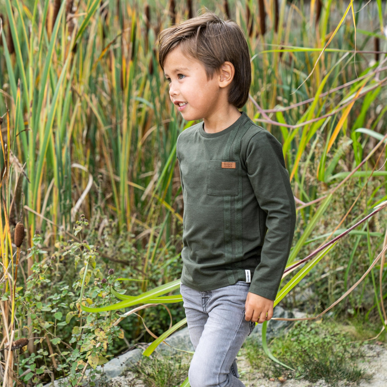 Aggiungi un tocco di stile al guardaroba del tua piccolo con questa splendida maglietta maniche lunghe firmata Koko Noko. Realizzata in morbido cotone, questa maglia verde scuro si distingue per il suo elegante taschino e il logo sul petto, per un look unico e sofisticato. Perfetta per le giornate più fresche, combina comfort e design moderno. Ideale per abbinamenti casual o più eleganti, è la scelta ideale per ogni occasione. Scopri la qualità del marchio olandese Koko Noko e lasciati ispirare dal suo stile inconfondibile.