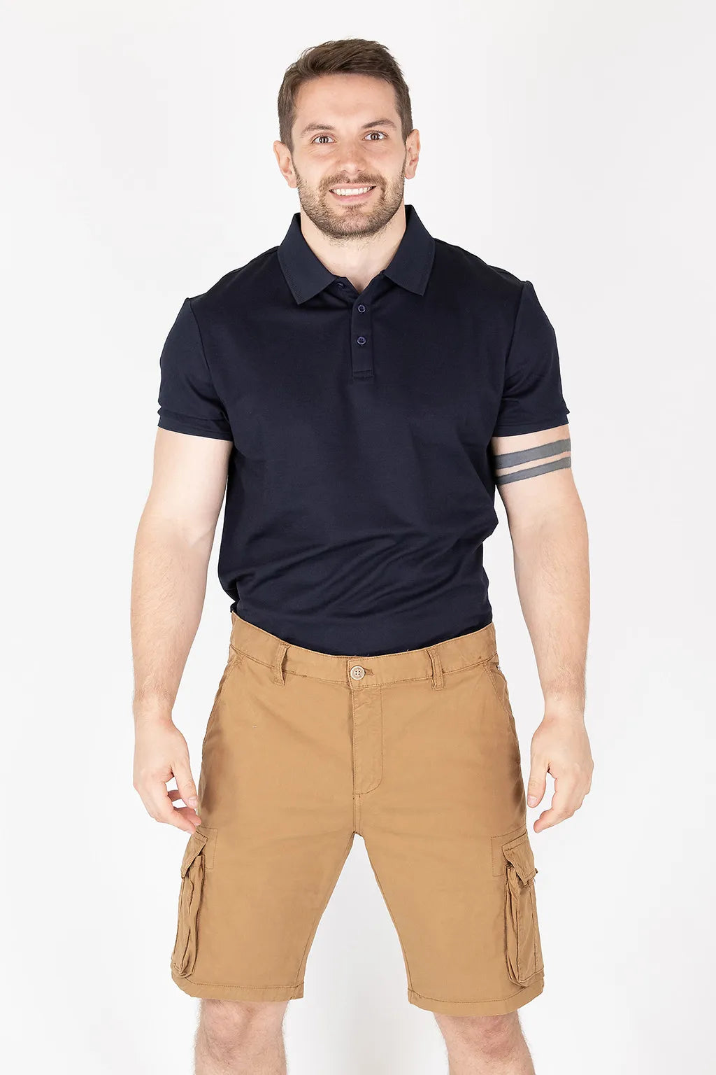 Pantaloni tessuto di cotone elasticizzato, vita con passanti, apertura con zip e bottoni, tasche laterali alla francese e con patta dietro, tasconi cargo in basso, fondo gamba dritto cq4g.