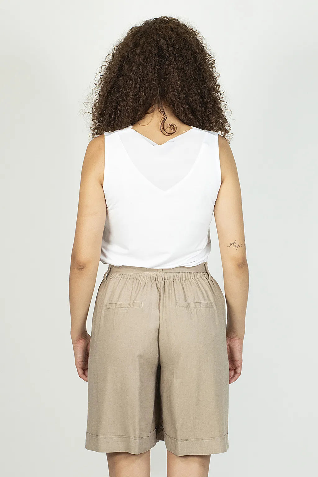 Freschezza e stile in un solo capo! Questi pantaloni corti da donna in misto viscosa e lino sono la soluzione perfetta per affrontare le giornate più calde con un look casual-chic senza rinunciare al comfort.