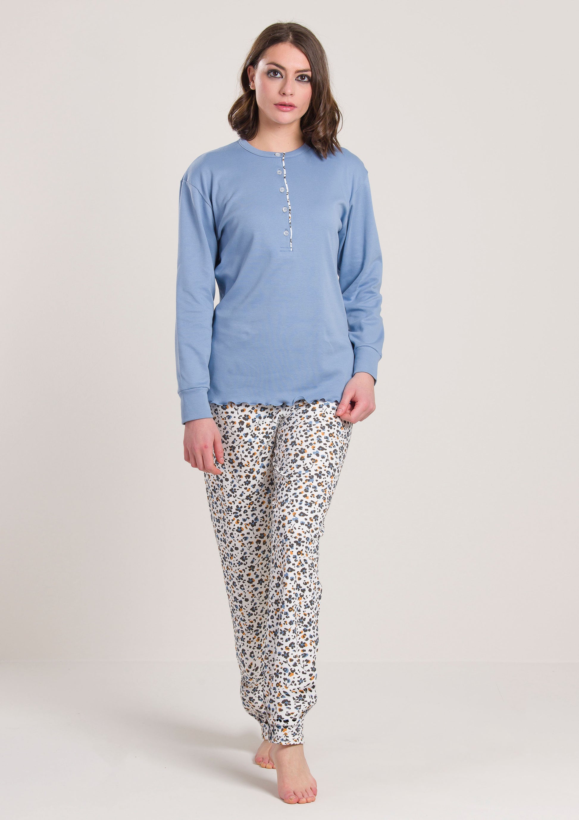 Pigiama Caldo Cotone Azzurro Gary V50065