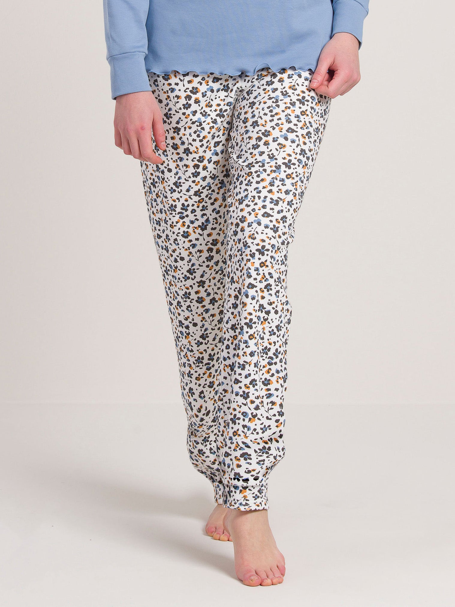 I pantaloni, con una stampa floreale delicata e romantica, completano questo set con un tocco di freschezza e femminilità. Realizzati in caldo cotone di alta qualità, questi pantaloni assicurano calore e morbidezza sulla pelle, accompagnandoti dolcemente nelle tue notti di relax.