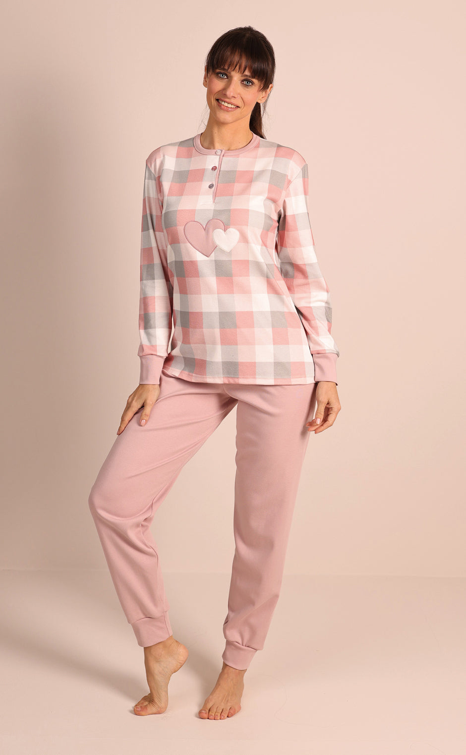 Grazie al tessuto caldo e morbido, questo pigiama assicura comfort e libertà di movimento, rendendolo ideale sia per rilassarsi in casa che per dormire serenamente. Un capo pratico, elegante e facile da indossare ogni giorno.