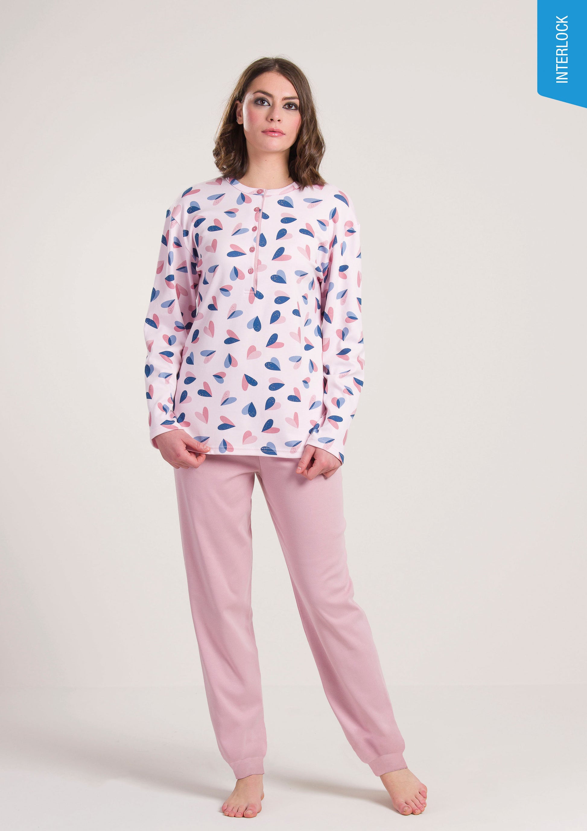 Scopri il pigiama Gary per donna in caldo cotone interlock, pensata per offrirti il massimo comfort senza rinunciare allo stile. Realizzato con materiali di alta qualità, selezionato con cura per garantire morbidezza sulla pelle e una vestibilità ottimale. Ideali per le fredde notti invernali, il pigiama Gary è composto da maglietta serafino e pantalone con polso.