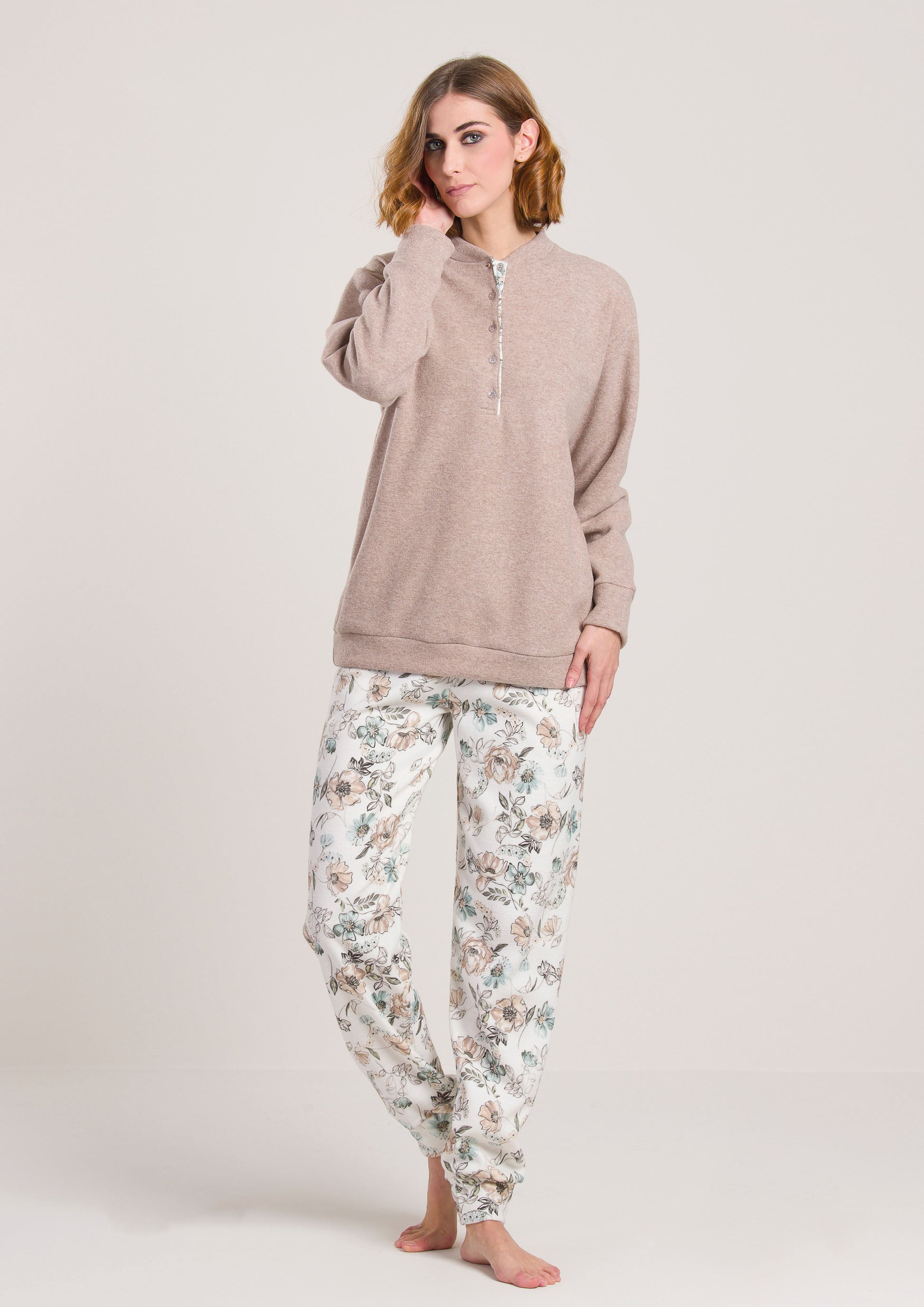 Pigiama Felpato Cipria a Fiori Gary V50132