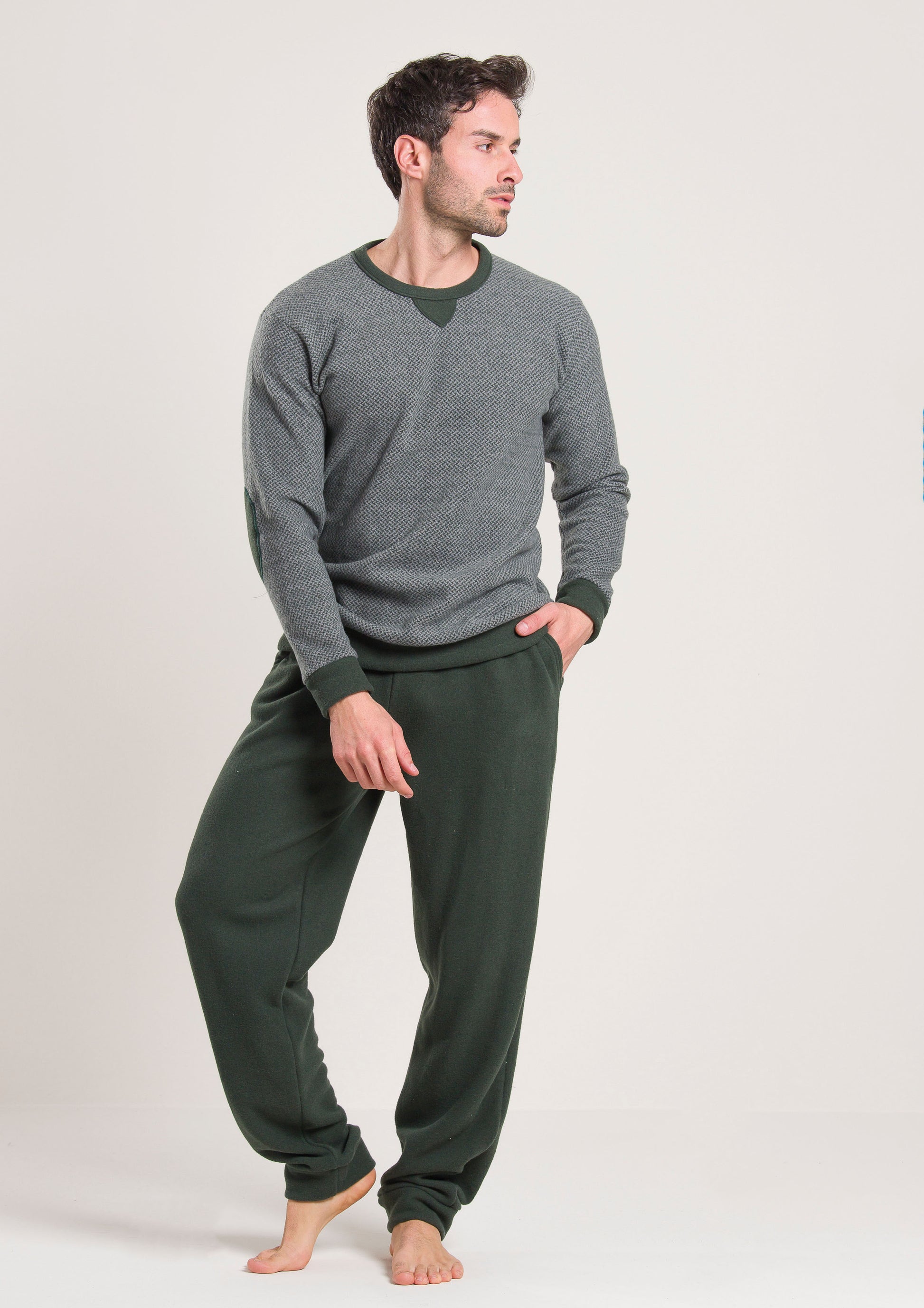 Scopri il pigiama da uomo in flanella di Gary, perfetto per le tue notti invernali all’insegna del comfort e del relax. Questo pigiama combina un design moderno e funzionale, con una maglia a maniche lunghe in un elegante colore salvia e pantaloni con polso, creando un look raffinato e casual allo stesso tempo.