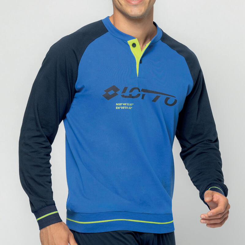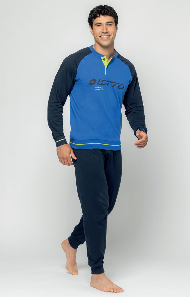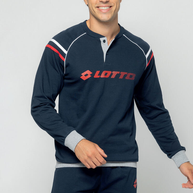 Rilassati con stile e comfort con questo pigiama leggero da uomo firmato Lotto, perfetto per accompagnarti nelle notti più fresche e nei momenti di relax. Realizzato in morbido jersey di cotone, assicura una vestibilità confortevole e una traspirabilità ideale per un sonno rigenerante. Il design sportivo con dettagli a contrasto e logo sul petto aggiunge un tocco dinamico, perfetto per chi non rinuncia allo stile neanche sotto le coperte.