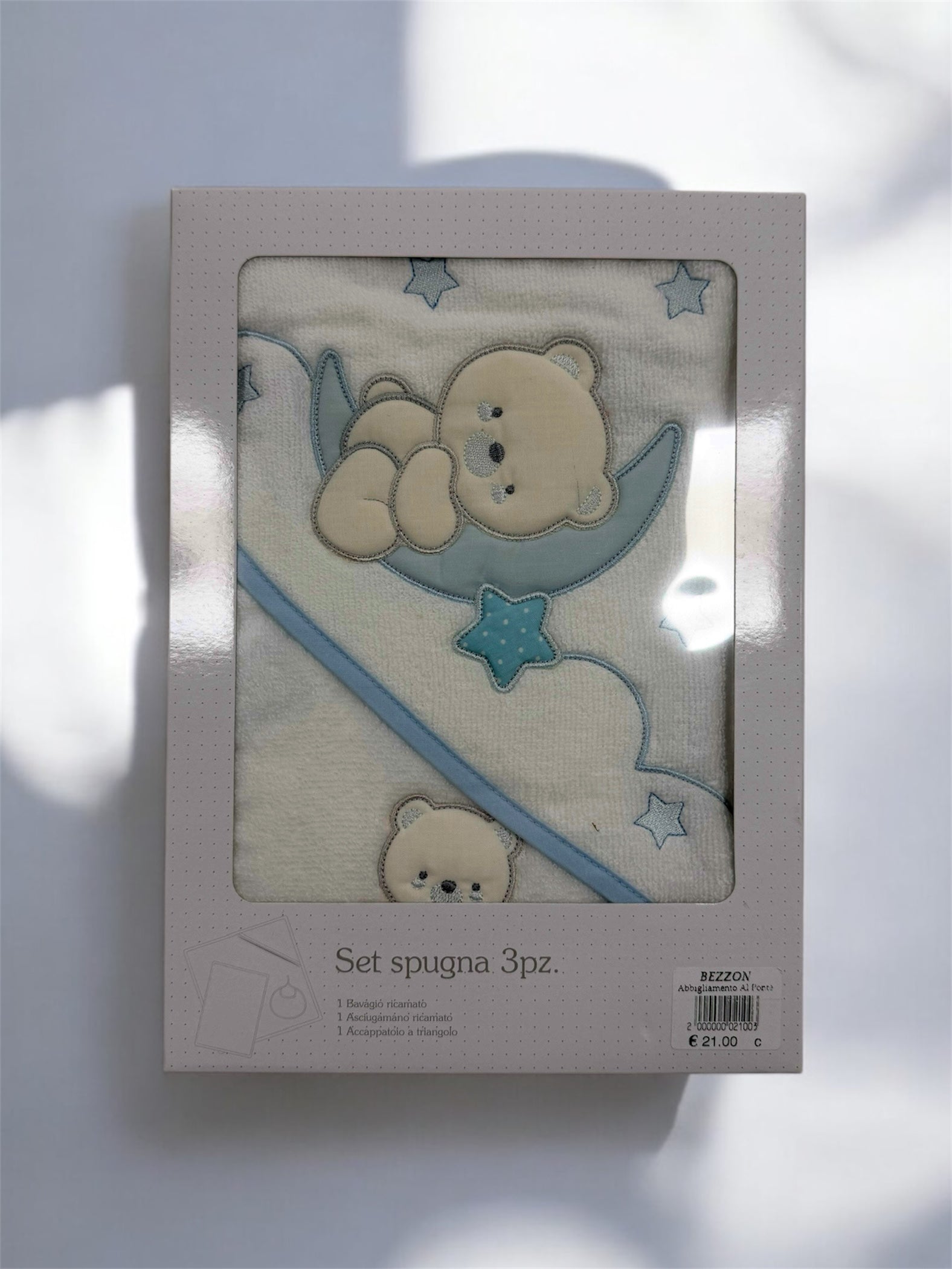 Il Triangolino in spugna protegge il tuo bambino dal freddo dopo il bagnetto, mentre il l'asciugamano e il bavaglino offrono praticità e comfort. Il delicato ricamo aggiunge un tocco elegante al set, disponibile in tinta unita per adattarsi a qualsiasi stile.
