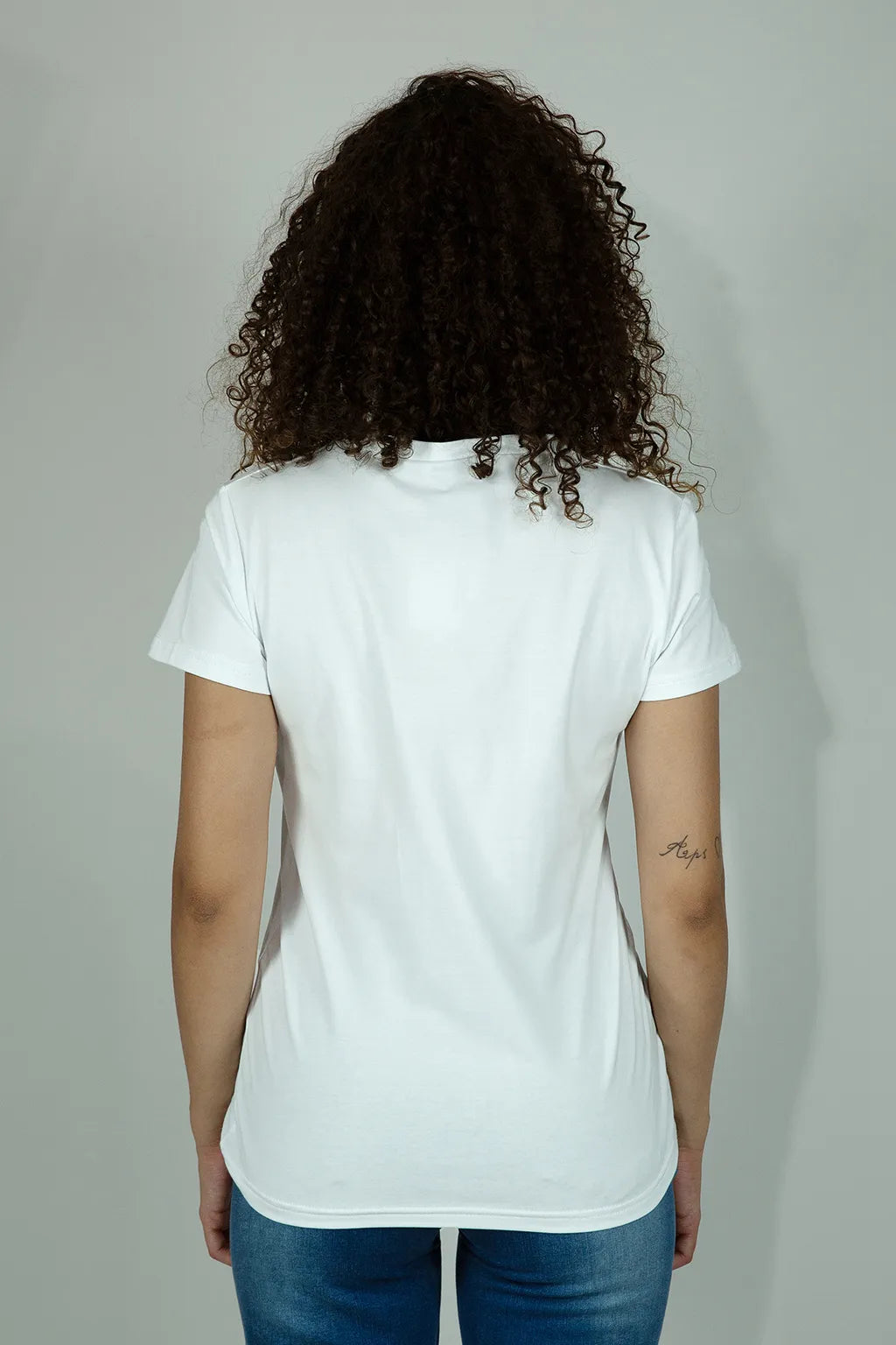 La stampa serigrafica frontale con strass applicati aggiunge un tocco brillante e raffinato, per un look casual ma curato nei dettagli. Ideale da abbinare a jeans, pantaloni o gonne per outfit freschi e versatili ogni giorno.