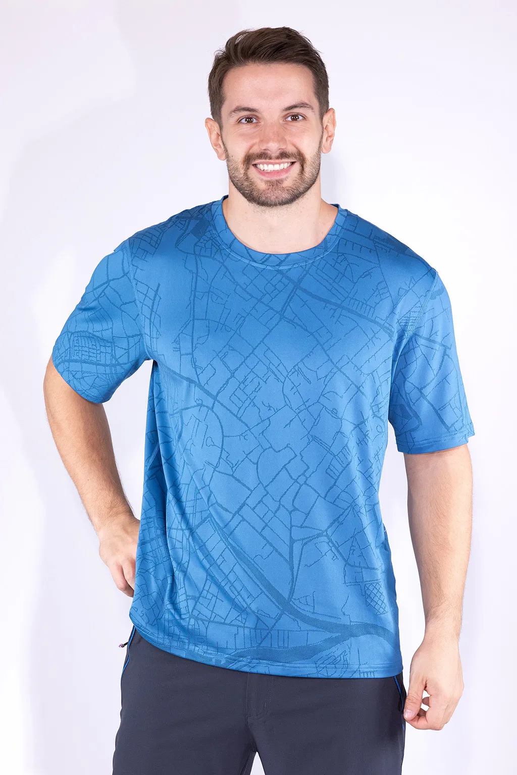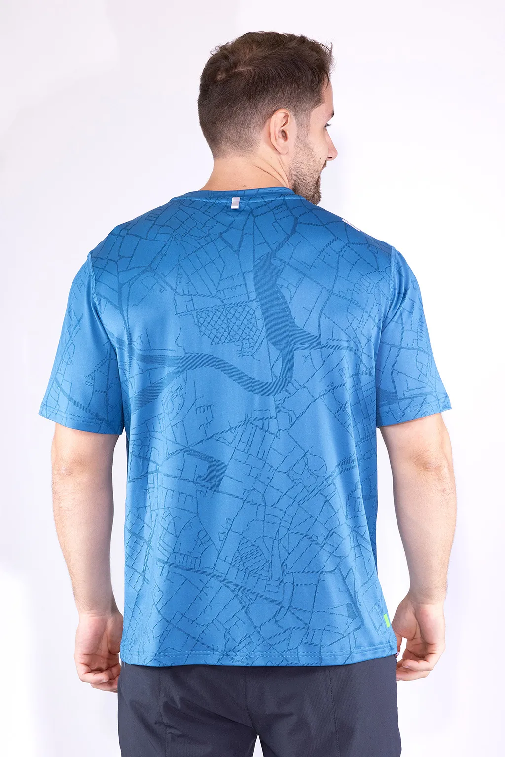 Maglietta tecnica da uomo in jersey elasticizzato, perfetta per il running, il fitness e tutte le tue sessioni di allenamento ad alta intensità. La stampa geometrica dal design moderno si combina con inserti in rete fluorescente che donano un tocco grintoso e aumentano la visibilità in movimento.